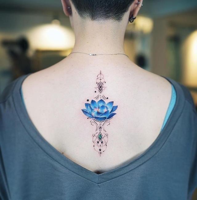 I tattoo con fiori di loto blu sono spesso scelti da chi vuole imprimersi sulla pelle un simbolo di conoscenza, saggezza e intelligenza; mentre quelli con fiori di loto viola simboleggiano il Nobile Sentiero Ottuplice, uno dei più famosi insegnamenti di Buddha.