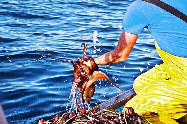 Una volta pescati, i polpi cercano di fuggire dalla barca e i pescatori devono subito stordirli condannandoli a una lenta agonia.